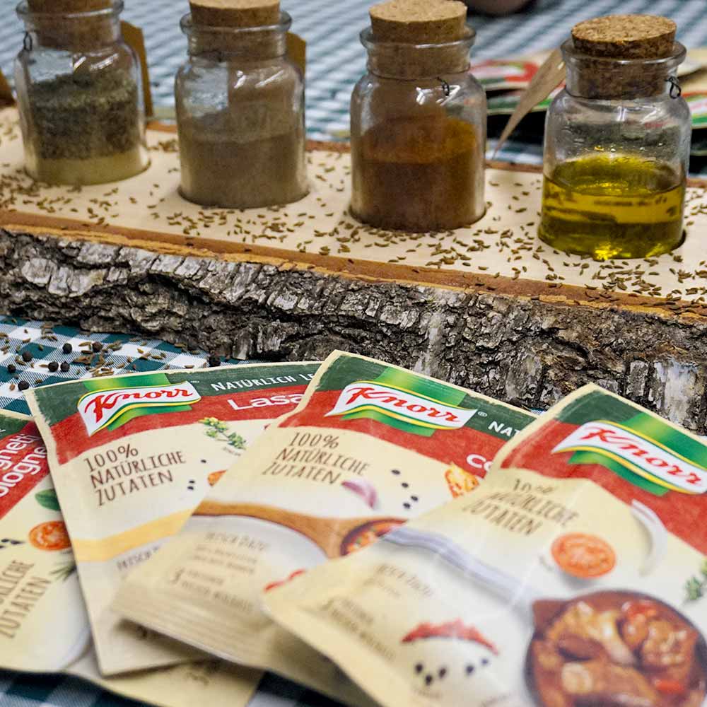Danach ging es in die Hauseigene Unilver Küche, dort wo auch die Rezepte von Knorr hergestellt werden. Der Chefkoch und Entwickler der Knorr Natürlich Lecker! Beutel, Adrian Springer, zeigte uns die neuen Fix Gewürzmischungen die aus rein natürlichen Zutaten bestehen. Danach kochte er uns die Rezepte vor und lies uns davon probieren.