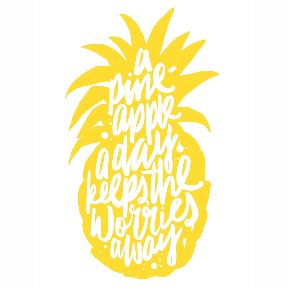 Da wir schon mal bei den Früchten sind, kommt hier die Ananas gleich hinterher. Es handelt sich hier um ein Hand lettering by Maiko Nagao. Power Gelb kommt immer gut und passt auch wieder wunderbar zu viel Schwarz-Weiß. Gefunden auf dem Blog von Maiko Nagao.