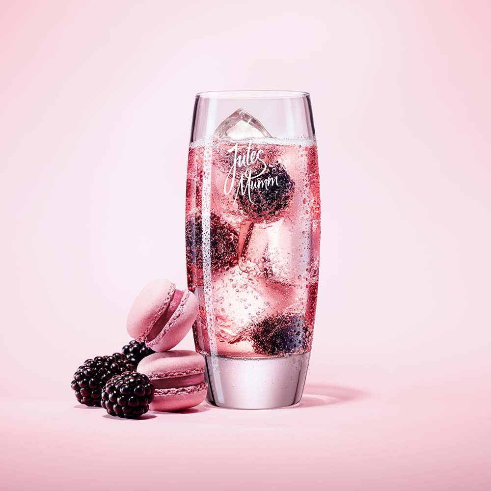 Die feine Komposition aus süßer Brombeere und eleganter Rose inspiriert und erfrischt wie ein Frühlingsspaziergang an der Seine. Auch die Farbe des Drinks erinnert an Paris, an die Kirschblütenpracht am Notre Dame und die köstlichen Macarons aus der berühmten Ladurée-Patisserie. Und Oh Là Là, die frischen Brombeeren wirken im Mumm La Parisienne wie kleine Juwelen. Raffiniert und gleichsam simpel in der Zubereitung überzeugt der Drink durch seine Nonchalance und sein französisches Lebensgefühl.