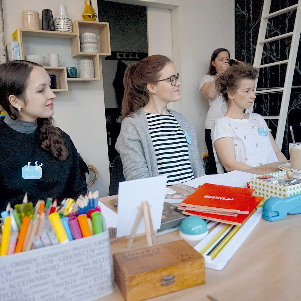 Gestartet wurde der DIY Workshop mit einer kleinen Einführung in die Welt der Farben, Stempel und Stanzen mit der DIY Expertin Synnöve. Denn schöne Weihnachtskarten selber basteln ist im Grunde ganz einfach, auch mit wenig kann man ganz viel erreichen. Erlaubt ist ja sowieso alles was gefällt, nicht wahr?